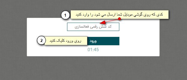 کد پیامک شده روی تلفن همراه خود را وارد کنید . توجه داشته باشید مهلت کد پیامک شده یک دقیقه میباشد .