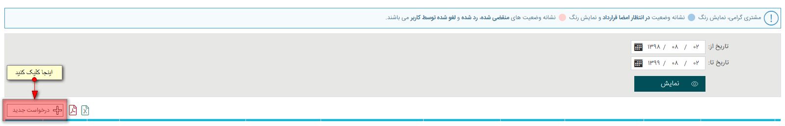 در صفحه نمایش داده شده روی گزینه درخواست جدید (بعلاوه سبز رنگ ) کلیک کنید