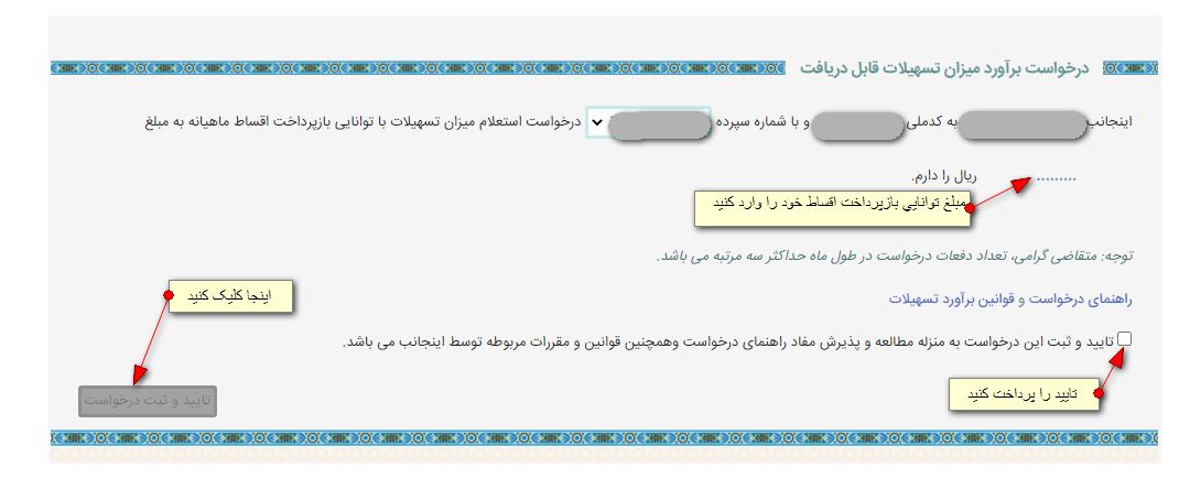 سپس منتظر واریز تسهیلات طی سه روز آینده باشید .