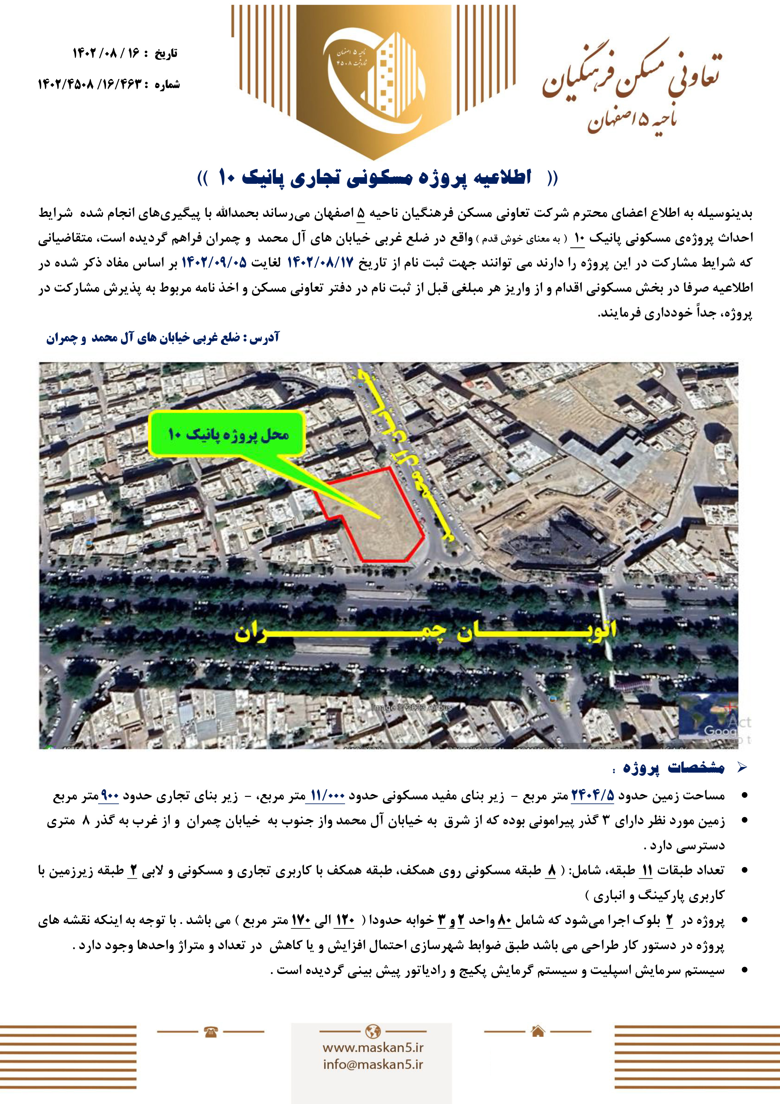 اطلاعیه ثبت نام پروژه مسکونی پانیک 10